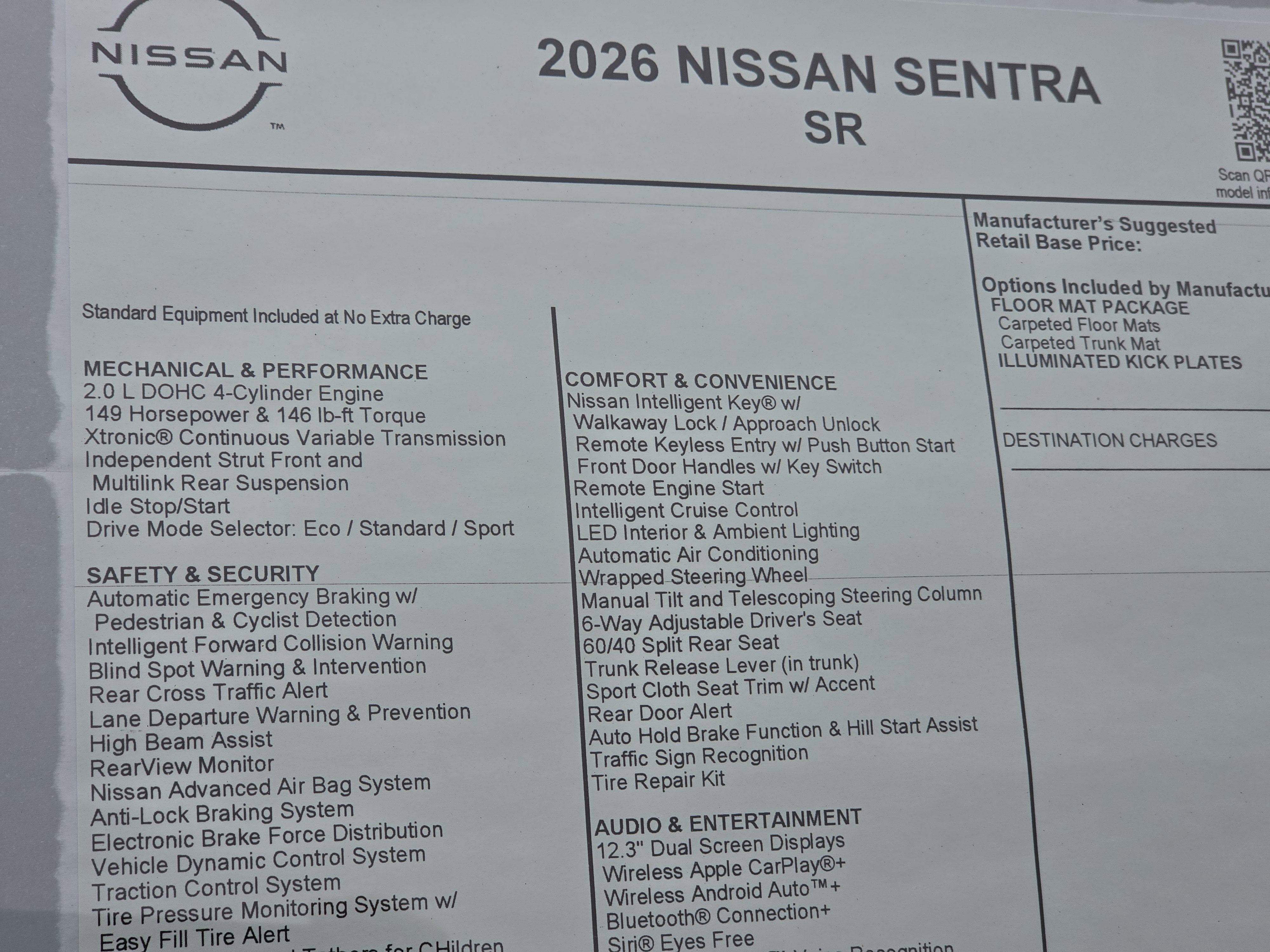 New 2026 Nissan Sentra SR