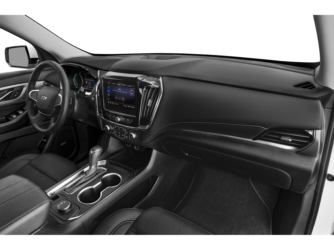 * Bluetooth®/Handsfree Calling *, * USB Adapter *, Traverse RS, 4D Sport Utility, 3.6L V6 SIDI VVT, 9-Speed Automatic, FWD, Iridescent Pearl Tricoat, Black Leather, Heavy-Duty Cooling System, Navigation System, Preferred Equipment Group 2LT, Trailering Equipment, 10 Speakers, 3.49 Axle Ratio, 3rd row seats: split-bench, 4-Wheel Disc Brakes, 7-Passenger Seating (2-2-3 Seating Configuration), ABS brakes, Air Conditioning, Alloy wheels, AM/FM radio: SiriusXM, Apple CarPlay/Android Auto, Auto-dimming door mirrors, Auto-dimming Rear-View mirror, Automatic temperature control, Bose Premium 10-Speaker Audio System Feature, Brake assist, Bumpers: body-color, Compass, Delay-off headlights, Driver door bin, Driver vanity mirror, Dual front impact airbags, Dual front side impact airbags, Electronic Stability Control, Emergency communication system, Four wheel independent suspension, Front anti-roll bar, Front Bucket Seats, Front Center Armrest, Front dual zone A/C, Front fog lights, Front reading lights, Fully automatic headlights, Garage door transmitter, Heated door mirrors, Heated front seats, High-Intensity Discharge Headlights, Illuminated entry, Leather-Appointed Seat Trim, Low tire pressure warning, Occupant sensing airbag, Outside temperature display, Overhead airbag, Overhead console, Panic alarm, Passenger door bin, Passenger vanity mirror, Power door mirrors, Power driver seat, Power Liftgate, Power passenger seat, Power steering, Power windows, Premium audio system: Chevrolet MyLink, Radio data system, Radio: Chevrolet Infotainment AM/FM Stereo w/Navigation, Rear air conditioning, Rear anti-roll bar, Rear reading lights, Rear window defroster, Rear window wiper, Remote keyless entry, Roof rack: rails only, Security system, SiriusXM Radio, Speed control, Speed-sensing steering, Spoiler, Steering wheel mounted audio controls, Tachometer, Telescoping steering wheel, Tilt steering wheel, Traction control, Trip computer, Turn signal indicator mirrors, Variably intermittent wipers, Voltmeter, Wheels: 20 Dark Android Painted Aluminum, Traverse RS, 4D Sport Utility, 3.6L V6 SIDI VVT, 9-Speed Automatic, FWD, Iridescent Pearl Tricoat, Black Leather, Heavy-Duty Cooling System, Navigation System, Preferred Equipment Group 2LT, Trailering Equipment.