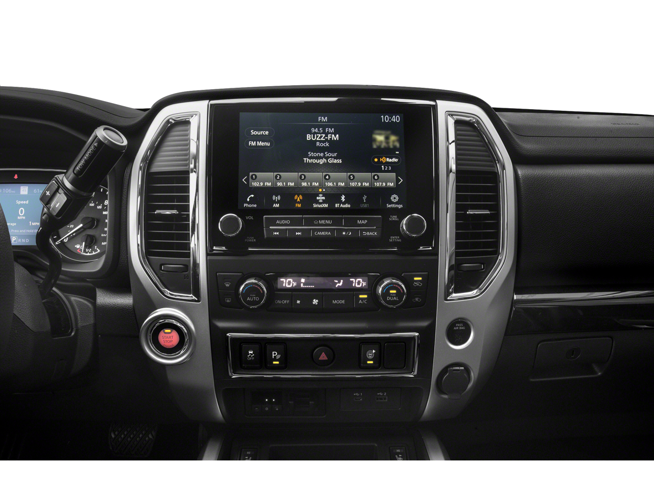 * Bluetooth®/Handsfree Calling *, * USB Adapter *, Titan SV, Certified Select Certified, 4D Crew Cab, 5.6L V8 DOHC 32V LEV3-ULEV70 400hp, 9-Speed Automatic, RWD, Super Black, Black Cloth, 110V Outlet in Bed, 110V/12V Outlets In Back Of Center Console, 2 Illuminated USB-A Ports In Back Of Center Console, 4-Pin/7-Pin Wiring Harness Connector (Rear Bumper), Auto-Dimming Rear-View Mirror, Auto-Dimming Rearview Mirror w/UGDO, Black Front Tow Hooks, Chrome Interior Door Locks, Convex Spotter Mirror, Dedicated Configurable Cell Phone Holder, Dual Zone Automatic HVAC, Flat Floor Function w/Tie Down Hooks, Front & Rear Parking Sensors, Heated Front Captain's Chairs, Heated Manually Extendable Tow Mirrors, Intelligent Key System, Leather-Wrapped Steering Wheel, LED Tailgate Area Illumination, LED Under Rail Bed Lighting, Power Sliding Rear Window w/Defogger, Puddle Lamps, Radio: NissanConnect w/Navigation, Rain Sensing Wipers, Rear HVAC Vents, Rear Utility Bed Step, Receiver Hitch, Remote Engine Start on Key Fob, Spray-On Bedliner, SV Convenience Package, SV Tow Package, SV Utility Package, Traffic Sign Recognition (TSR), Trailer Brake Controller, Trailer Light Check Function On Key Fob, Universal Garage Door Opener, Utilitrack System w/4 Tie-Down Cleats, 3.692 Axle Ratio, 4-Wheel Disc Brakes, 6 Speakers, ABS brakes, Air Conditioning, Alloy wheels, AM/FM radio: SiriusXM, Auto High-beam Headlights, Blind Spot Warning, Brake assist, Bumpers: chrome, Carpet Floor Mats (L95), Cloth Seat Trim, Driver door bin, Driver vanity mirror, Dual front impact airbags, Dual front side impact airbags, Electronic Stability Control, Electronic Tailgate Lock Deletion, Emergency communication system: NissanConnect Services, Front anti-roll bar, Front Center Armrest w/Storage, Front reading lights, Front Split Bench Seat (40/20/40), Front wheel independent suspension, Fully automatic headlights, Heated door mirrors, Illuminated entry, Knee airbag, Low tire pressure warning, NissanConnect featuring Apple CarPlay and Android Auto, Occupant sensing airbag, Outside temperature display, Overhead airbag, Overhead console, Panic alarm, Passenger door bin, Passenger vanity mirror, Power door mirrors, Power steering, Power windows, Radio data system, Radio: NissanConnect AM/FM, Rear anti-roll bar, Rear Bumper Step w/Electronic Tailgate Lock, Rear Parking Sensors, Rear seat center armrest, Rear step bumper, Rear window defroster, Remote keyless entry, Security system, Speed control, Speed-sensing steering, Speed-Sensitive Wipers, Splash Guards, Split folding rear seat, Steering wheel mounted audio controls, Tachometer, Telescoping steering wheel, Tilt steering wheel, Traction control, Trip computer, Turn signal indicator mirrors, Variably intermittent wipers, Voltmeter, Wheels: 18 x 8 Painted Machined Alloy, Wheels: 20 x 8 Chrome, Titan SV, 4D Crew Cab, 5.6L V8 DOHC 32V LEV3-ULEV70 400hp, 9-Speed Automatic, RWD, Super Black, Black Cloth, 110V Outlet in Bed, 110V/12V Outlets In Back Of Center Console, 2 Illuminated USB-A Ports In Back Of Center Console, 4-Pin/7-Pin Wiring Harness Connector (Rear Bumper), Auto-Dimming Rear-View Mirror, Auto-Dimming Rearview Mirror w/UGDO, Black Front Tow Hooks, Chrome Interior Door Locks, Convex Spotter Mirror, Dedicated Configurable Cell Phone Holder, Dual Zone Automatic HVAC, Flat Floor Function w/Tie Down Hooks, Front & Rear Parking Sensors, Heated Front Captain's Chai