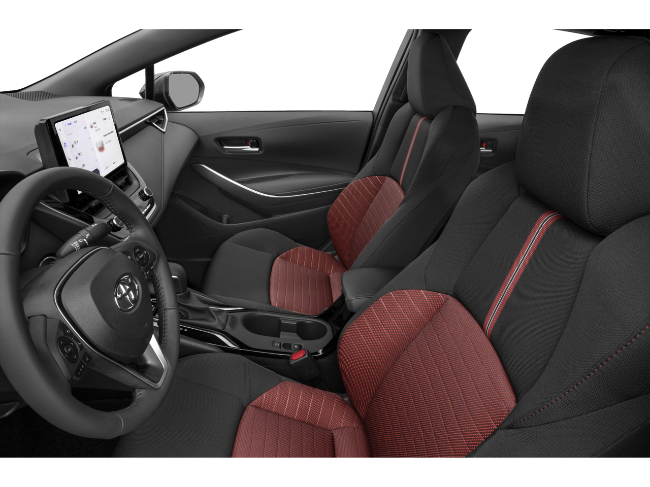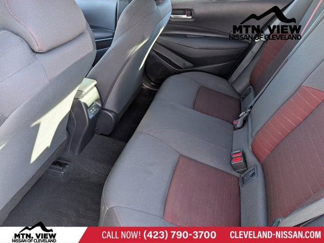 * Bluetooth®/Handsfree Calling *, * USB Adapter *, Corolla SE, Mtn View Certified Certified, 4D Sedan, 2.0L I4 DOHC 16V, CVT, FWD, Black/Red w/Premium Seat Trim, 4-Wheel Disc Brakes, 6 Speakers, ABS brakes, Air Conditioning, Alloy wheels, AM/FM radio: SiriusXM, Auto High-beam Headlights, Automatic temperature control, Brake assist, Bumpers: body-color, Delay-off headlights, Driver door bin, Driver vanity mirror, Dual front impact airbags, Dual front side impact airbags, Electronic Stability Control, Emergency communication system: Safety Connect (up to 10-year trial subscription), Exterior Parking Camera Rear, Four wheel independent suspension, Front anti-roll bar, Front Bucket Seats, Front Center Armrest, Front reading lights, Front Sport Seats, Fully automatic headlights, Heated door mirrors, Illuminated entry, Knee airbag, Leather steering wheel, Low tire pressure warning, Occupant sensing airbag, Outside temperature display, Overhead airbag, Panic alarm, Passenger door bin, Passenger vanity mirror, Power door mirrors, Power steering, Power windows, Premium Seat Trim, Radio data system, Radio: 8 Toyota Audio Multimedia, Rear anti-roll bar, Rear seat center armrest, Rear side impact airbag, Rear window defroster, Remote keyless entry, Speed control, Split folding rear seat, Spoiler, Steering wheel mounted audio controls, Tachometer, Telescoping steering wheel, Tilt steering wheel, Traction control, Trip computer, Turn signal indicator mirrors, Variably intermittent wipers, Wheels: 18 Alloy w/Graphite Finish, Corolla SE, 4D Sedan, 2.0L I4 DOHC 16V, CVT, FWD, Black/Red w/Premium Seat Trim.