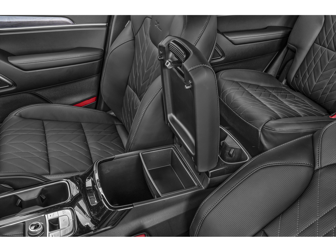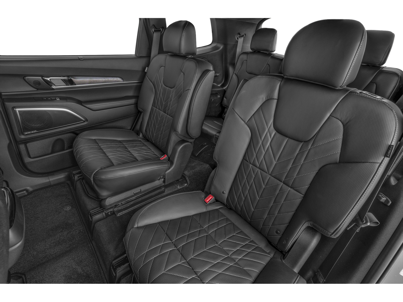 * Bluetooth®/Handsfree Calling *, * USB Adapter *, 10 Speakers, 3.648 Axle Ratio, 3rd row seats: split-bench, 4-Wheel Disc Brakes, ABS brakes, Air Conditioning, Alloy wheels, AM/FM radio: SiriusXM, Apple CarPlay & Android Auto, Auto High-beam Headlights, Auto-dimming Rear-View mirror, Auto-leveling suspension, Automatic temperature control, Brake assist, Bumpers: body-color, Carpet Floor Mats, Compass, Delay-off headlights, Driver door bin, Driver vanity mirror, Dual front impact airbags, Dual front side impact airbags, Electronic Stability Control, Emergency communication system: 911 Connect, Exterior Parking Camera Rear, Four wheel independent suspension, Front anti-roll bar, Front Bucket Seats, Front Center Armrest, Front dual zone A/C, Front fog lights, Front reading lights, Fully automatic headlights, Garage door transmitter: HomeLink, harman/kardon® Speakers, Heads-Up Display, Heated & Ventilated Front Bucket Seats, Heated door mirrors, Heated front seats, Heated rear seats, Heated steering wheel, Illuminated entry, Knee airbag, Leather Shift Knob, Leather steering wheel, Low tire pressure warning, Memory seat, Navigation System, Occupant sensing airbag, Outside temperature display, Overhead airbag, Overhead console, Panic alarm, Passenger door bin, Passenger vanity mirror, Power door mirrors, Power driver seat, Power Liftgate, Power moonroof, Power passenger seat, Power steering, Power windows, Premium Nappa Leather Seat Trim, Radio data system, Radio: AM/FM Harman Kardon Audio System, Rain sensing wipers, Rear air conditioning, Rear anti-roll bar, Rear audio controls, Rear reading lights, Rear side impact airbag, Rear window defroster, Rear window wiper, Reclining 3rd row seat, Remote keyless entry, Roof rack: rails only, Security system, Smart Key w/ Push Button and Remote Start, Speed control, Speed-sensing steering, Split folding rear seat, Spoiler, Steering wheel mounted audio controls, Tachometer, Telescoping steering wheel, Tilt steering wheel, Traction control, Trip computer, Turn signal indicator mirrors, Variably intermittent wipers, Ventilated front seats, Ventilated rear seats, Wheels: 20 x 7.5 Black Finish X-LINE Exclusive.