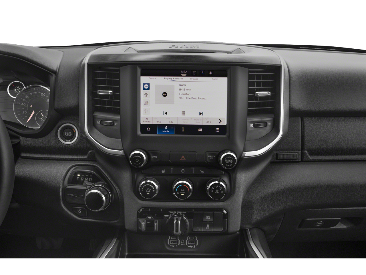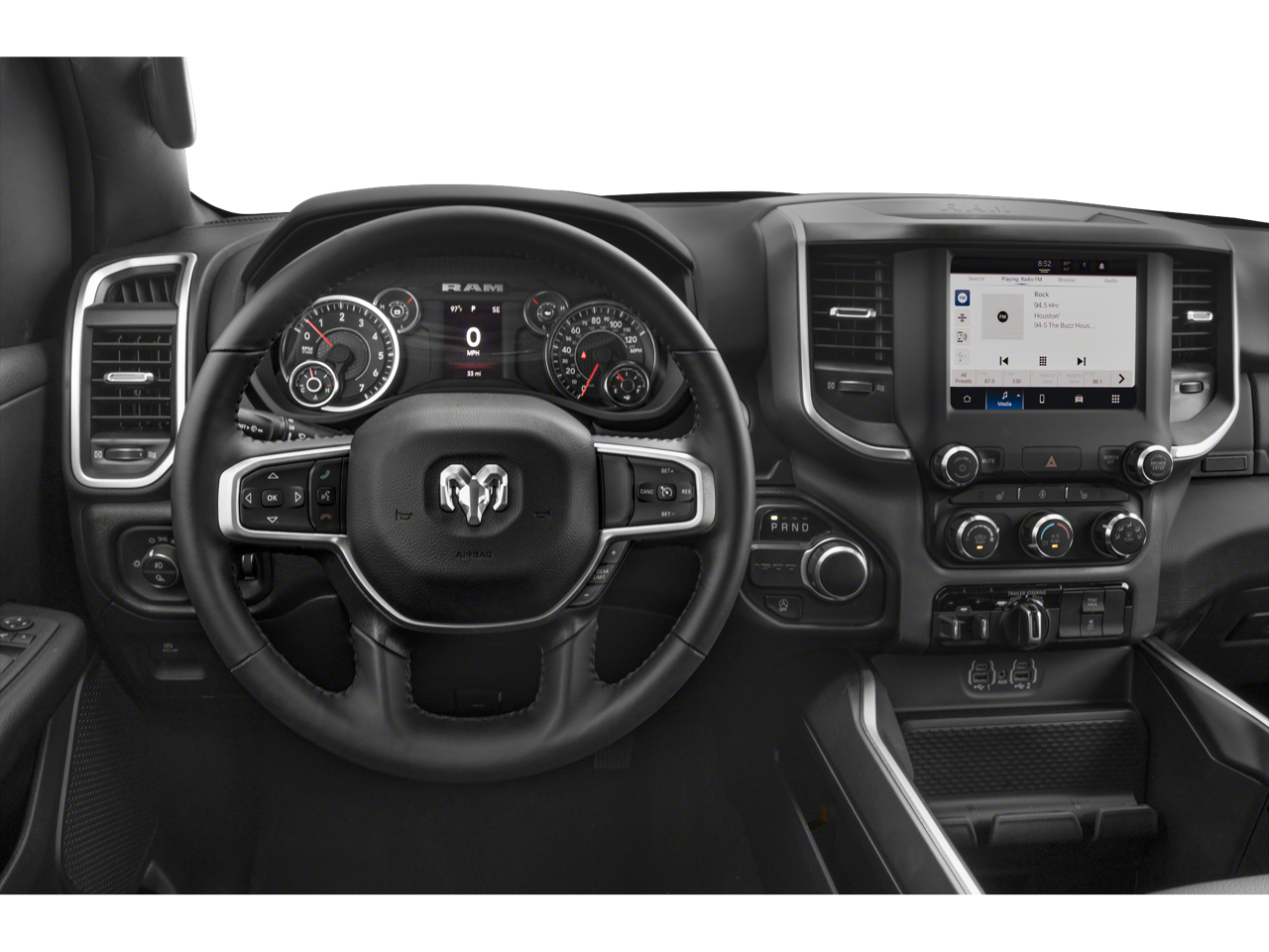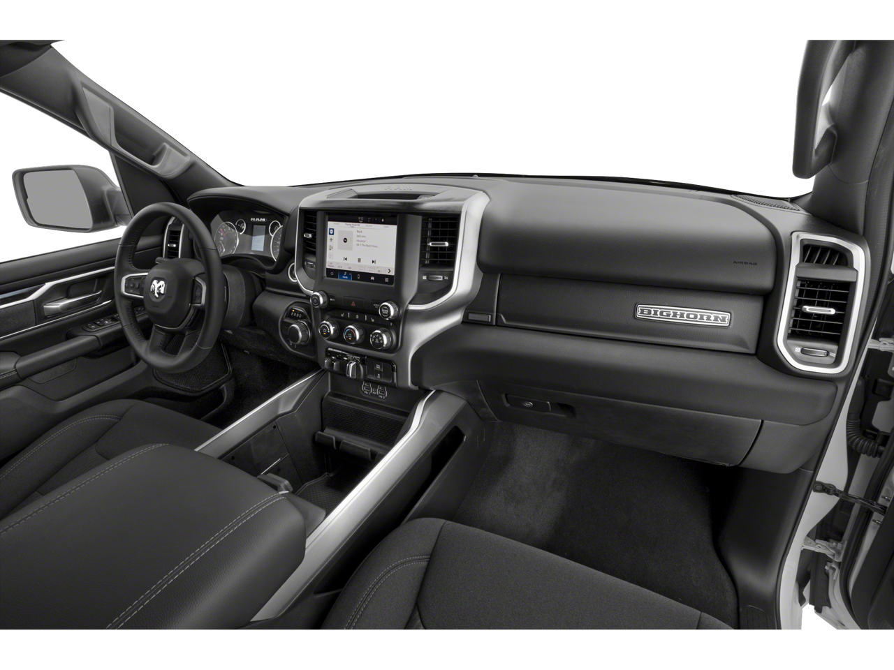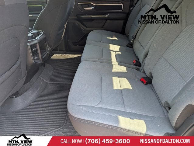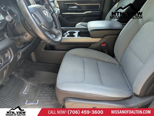 2nd Row In Floor Storage Bins, 3 Rear Seat Head Restraints, 3.21 Rear Axle Ratio, 4 Way Front Headrests, 4-Wheel Disc Brakes, 48V Belt Starter Generator, 4G LTE Wi-Fi Hot Spot, 6 Speakers, ABS Brakes, Air Conditioning, Alloy Wheels, AM/FM radio, Apple CarPlay, Auto-Dimming Exterior Driver Mirror, Auto-Dimming Rear-View Mirror, Bed Utility Group, Big Horn Badge, Big Horn Level 1 Equipment Group, Black Premium Power Mirrors, Bluetooth® Handsfree Phone & Audio, Brake Assist, Bumpers: chrome, Class IV Receiver Hitch, Cloth Bench Seat, Compass, Connectivity - US/Canada, Convex Wide-Angle Exterior Mirror Insert, Delay-off Headlights, Driver door bin, Dual Front Impact Airbags, Dual Front Side Impact Airbags, Electric Shift-On-Demand Transfer Case, Electronic Stability Control, Emergency communication system: RAM Connect, Exterior Mirrors Courtesy Lamps, Exterior Mirrors w/Heating Element, Exterior Mirrors w/Supplemental Signals, For Details, Visit DriveUconnect.com, For More Info, Call 800-643-2112, Front Anti-Roll Bar, Front Center Armrest w/Storage, Front Fog Lamps, Front License Plate Bracket, Front reading lights, Front Seat Back Map Pockets, Front wheel independent suspension, Fully Automatic Headlights, Global Telematics Box Module (TBM), Glove Box Lamp, Google Android Auto, Heated door mirrors, Heated Front Seats, Heated Steering Wheel, Illuminated Entry, Integrated Voice Command w/Bluetooth®, Leather steering wheel, Low Tire Pressure Warning, MOPAR 4 Adjustable Cargo Tie-Down Hooks, MOPAR Deployable Bed Step, MOPAR Spray In Bedliner, Occupant sensing airbag, Outside temperature display, Overhead airbag, Overhead console, Panic alarm, ParkView Rear Back-Up Camera, Passenger door bin, Passenger Sun Visor w/Illuminated Mirror, Passenger vanity mirror, Pick-Up Box Lighting, Power Door Mirrors, Power Steering, Power Windows, Power-Folding Mirrors, Quick Order Package 23Z Big Horn, Radio data system, Radio: Uconnect 3 w/5 Display, Radio: Uconnect 5 W w/8.4 Display, RAM Grille Badge - Chrome, Rear 60/40 Folding Seat, Rear Anti-Roll Bar, Rear Dome w/On/Off Switch Lamp, Rear Power Sliding Window, Rear seat center armrest, Rear Step Bumper, Rear Window Defroster, Remote Keyless Entry, SiriusXM Radio Service, SiriusXM Satellite Radio, Speed control, Split Folding Rear Seat, Steering Wheel Mounted Audio Controls, Tachometer, Telescoping steering wheel, Tilt steering wheel, Traction Control, Tri-Fold Tonneau Cover, Trip computer, USB Host Flip, Variably intermittent wipers, Voltmeter, Wheels: 18 x 8 Cast-Aluminum Painted.