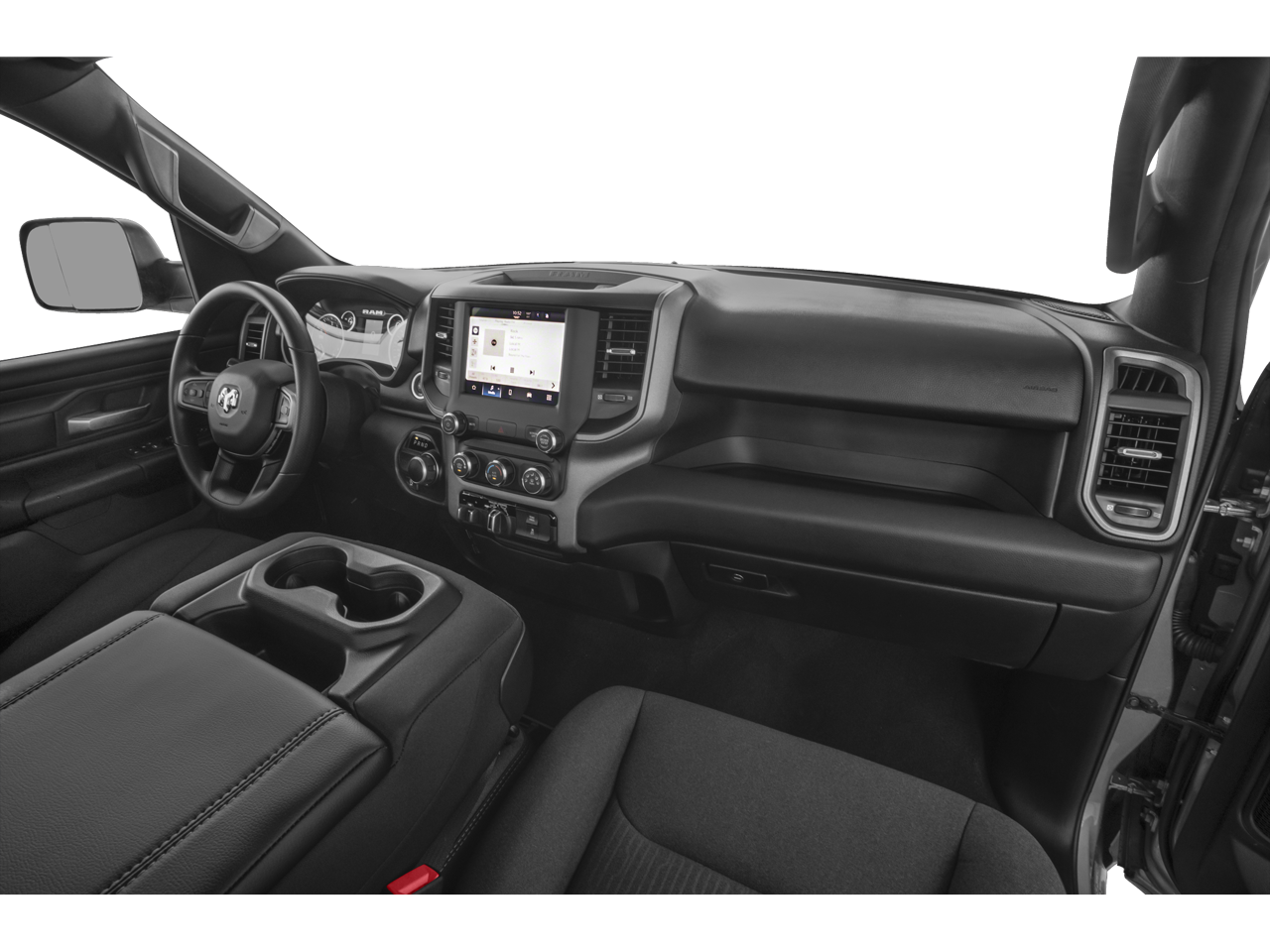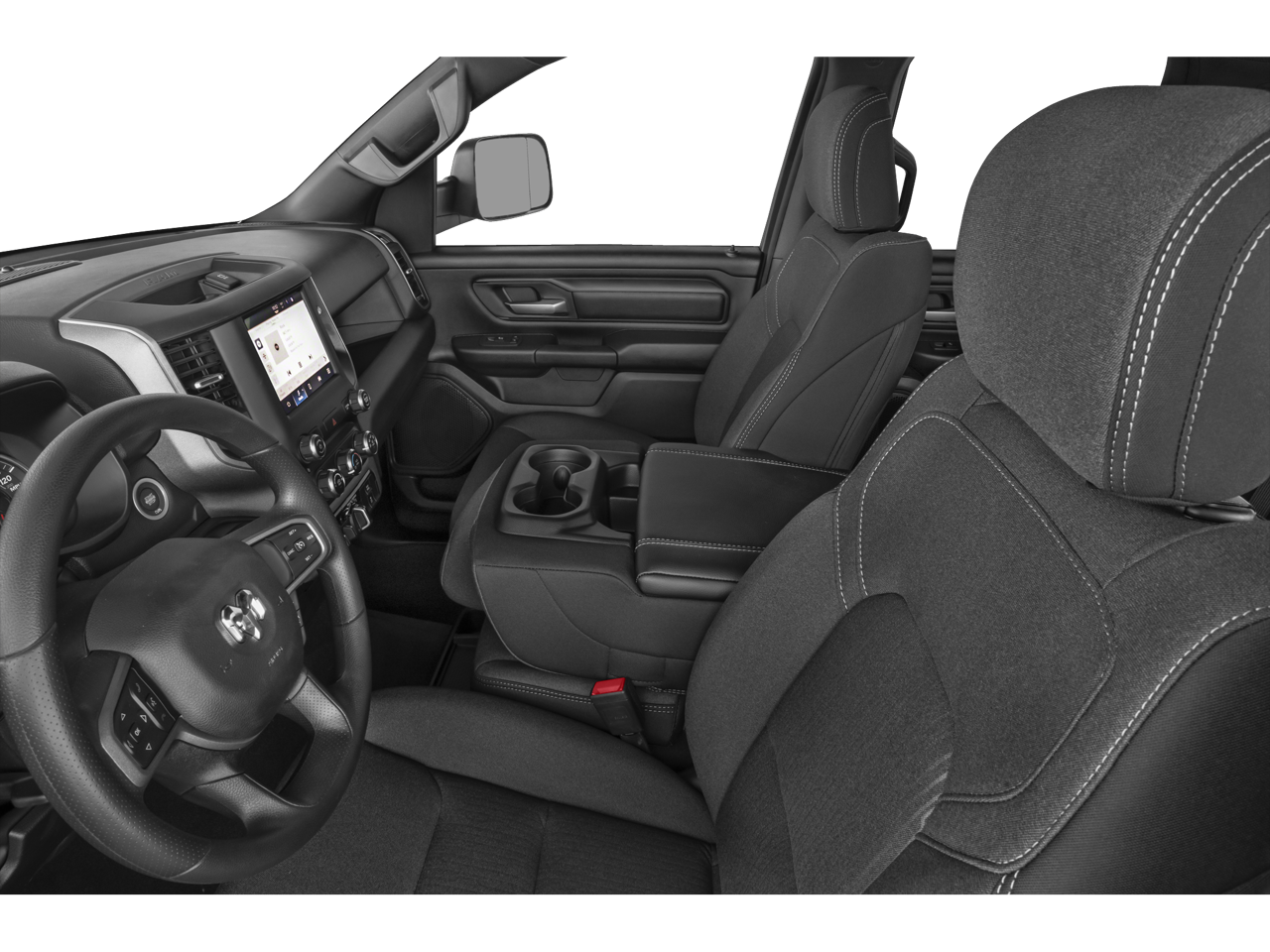 3.21 Rear Axle Ratio, 3.55 Rear Axle Ratio, 4 Way Front Headrests, 4-Wheel Disc Brakes, 40/20/40 Split Bench Seat, 48V Belt Starter Generator, 4G LTE Wi-Fi Hot Spot, 6 Speakers, ABS Brakes, Air Conditioning, AM/FM radio, Apple CarPlay, Black Trailer Tow Power Mirrors, Bluetooth® Handsfree Phone & Audio, Brake Assist, Class IV Receiver Hitch, Compass, Connectivity - US/Canada, Delay-off Headlights, Driver door bin, Dual Front Impact Airbags, Dual Front Side Impact Airbags, Electronic Stability Control, Emergency communication system: RAM Connect, Exterior Mirrors Courtesy Lamps, Exterior Mirrors w/Heating Element, Exterior Mirrors w/Supplemental Signals, For Details, Visit DriveUconnect.com, For More Info, Call 800-643-2112, Front Anti-Roll Bar, Front Center Armrest, Front License Plate Bracket, Front reading lights, Front wheel independent suspension, Fully Automatic Headlights, Global Telematics Box Module (TBM), Google Android Auto, Heated door mirrors, Heavy Duty Vinyl 40/20/40 Split Bench Seat, Illuminated Entry, Low Tire Pressure Warning, Manual Adjust 4-Way Driver Seat, Manual Adjust 4-Way Front Passenger Seat, MOPAR Front & Rear Rubber Floor Mats, Occupant sensing airbag, Outside temperature display, Overhead airbag, Overhead console, Panic alarm, ParkView Rear Back-Up Camera, Passenger door bin, Passenger vanity mirror, Power Door Mirrors, Power Steering, Power Windows, Quick Order Package 27A Tradesman, Radio data system, Radio: Uconnect 3 w/5 Display, Radio: Uconnect 5 W w/8.4 Display, Rear Anti-Roll Bar, Rear Folding Seat, Rear Step Bumper, Remote Keyless Entry, SiriusXM Radio Service, SiriusXM Satellite Radio, Speed control, Tachometer, Telescoping steering wheel, Tilt steering wheel, Traction Control, Trailer Brake Control, Trailer Light Check, Trailer Reverse Steering Control, Trailer Tire Pressure Monitoring System, Trailer Tow Group, USB Host Flip, Variably intermittent wipers, Voltmeter, Wheels: 18 x 7.5 Steel Painted.