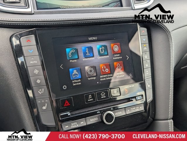 * Bluetooth®/Handsfree Calling *, * USB Adapter *, QX50 LUXE AWD, Mtn View Certified Certified, 4D Sport Utility, I4, CVT, AWD, White, Graphite Leather, 4-Wheel Disc Brakes, 6 Speakers, ABS brakes, Air Conditioning, Alloy wheels, AM/FM radio: SiriusXM, Auto High-beam Headlights, Auto-dimming Rear-View mirror, Automatic temperature control, Bose 12-Speaker Premium Audio, Brake assist, Bumpers: body-color, CD player, Delay-off headlights, Driver door bin, Driver vanity mirror, Dual front impact airbags, Dual front side impact airbags, Electronic Stability Control, Emergency communication system: INFINITI InTouch (1-year complimentary trial), Exterior Parking Camera Rear, Floor Mats, Four wheel independent suspension, Front anti-roll bar, Front Bucket Seats, Front Center Armrest, Front dual zone A/C, Front reading lights, Fully automatic headlights, Garage door transmitter: HomeLink, Heated door mirrors, Heated Front Bucket Seats, Heated front seats, Illuminated entry, Illuminated Kick Plates, Knee airbag, Leather Shift Knob, Leather steering wheel, Leather-Appointed Seat Trim, Literature Kit, Low tire pressure warning, Memory seat, Occupant sensing airbag, Outside temperature display, Overhead airbag, Overhead console, Panic alarm, Passenger door bin, Passenger vanity mirror, Power door mirrors, Power driver seat, Power Liftgate, Power moonroof, Power passenger seat, Power steering, Power windows, Radio data system, Radio: HD Audio System, Rear anti-roll bar, Rear Parking Sensors, Rear reading lights, Rear seat center armrest, Rear side impact airbag, Rear window defroster, Rear window wiper, Remote keyless entry, Security system, Speed control, Speed-sensing steering, Speed-Sensitive Wipers, Splash Guards (Set of 4), Split folding rear seat, Spoiler, Steering wheel mounted audio controls, Tachometer, Telescoping steering wheel, Tilt steering wheel, Traction control, Trip computer, Turn signal indicator mirrors, Variably intermittent wipers, Wheels: 19 Silver Painted Aluminum Alloy, QX50 LUXE AWD, 4D Sport Utility, I4, CVT, AWD, White, Graphite Leather.