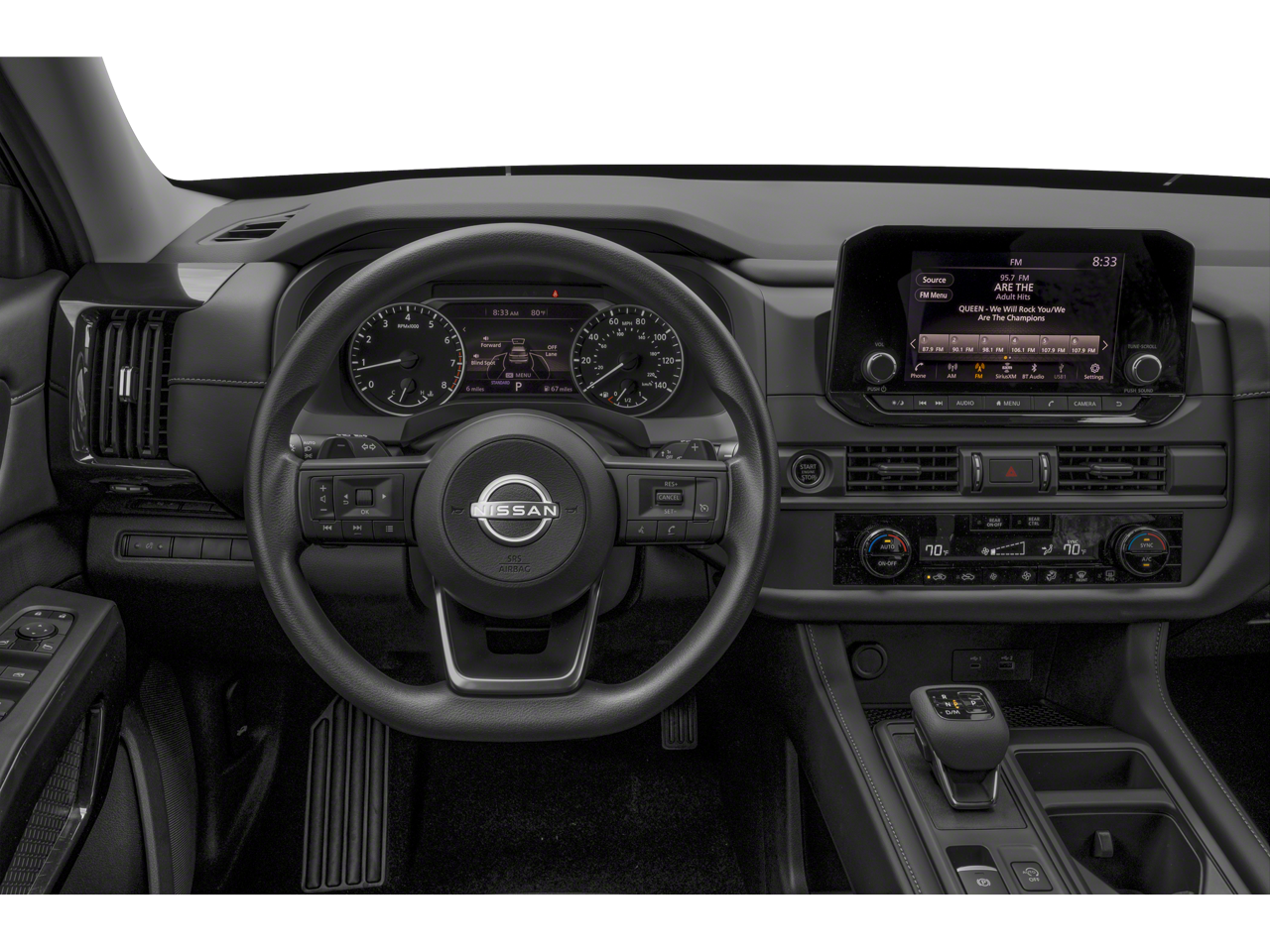 3rd row seats: bench, 4-Wheel Disc Brakes, 6 Speakers, ABS Brakes, Air Conditioning, Alloy Wheels, AM/FM radio: SiriusXM, Auto High-Beam Headlights, Automatic temperature control, Bench Seat Carpeted Floor Mats (set of 4), Black Splash Guards (set of 4), Blind Spot Warning, Brake Assist, Bumpers: body-color, Cloth Seating Surfaces, Delay-off Headlights, Driver door bin, Driver vanity mirror, Dual Front Impact Airbags, Dual Front Side Impact Airbags, Electronic Stability Control, Four wheel independent suspension, Front Anti-Roll Bar, Front Bucket Seats, Front Center Armrest, Front Dual Zone A/C, Front reading lights, Fully Automatic Headlights, Illuminated Entry, Knee airbag, Low Tire Pressure Warning, NissanConnect featuring Apple CarPlay and Android Auto, Occupant sensing airbag, Outside temperature display, Overhead airbag, Overhead console, Panic alarm, Passenger door bin, Passenger vanity mirror, Power Door Mirrors, Power Steering, Power Windows, Radio data system, Radio: AM/FM Audio System with NissanConnect, Rear Air Conditioning, Rear Anti-Roll Bar, Rear Parking Sensors, Rear reading lights, Rear side impact airbag, Rear window defroster, Rear window wiper, Reclining 3rd Row Seat, Remote Keyless Entry, Security system, Speed control, Speed-sensing steering, Split Folding Rear Seat, Spoiler, Steering Wheel Mounted Audio Controls, Tachometer, Telescoping steering wheel, Tilt steering wheel, Traction Control, Trip computer, Variably intermittent wipers, Wheels: 18 x 8J Painted Alloy.