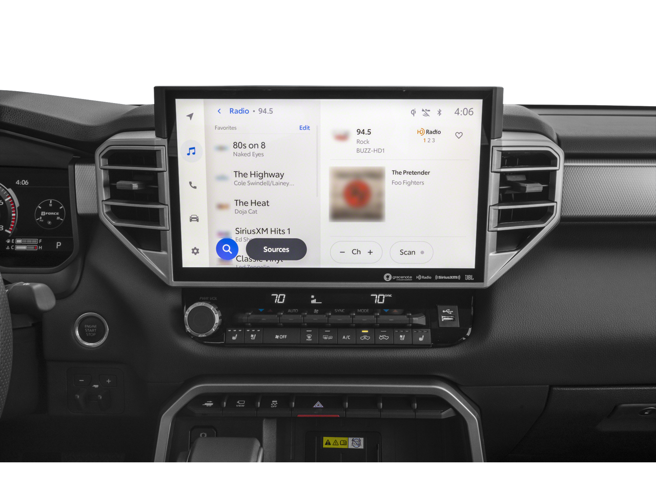 * Bluetooth®/Handsfree Calling *, * USB Adapter *, Tundra Limited 4x4, 3.4L V6, 10-Speed Automatic, 4WD, Magnetic Gray Metallic, Navigation system: Drive Connect Cloud Navigation (1-year trial subscription), 20 Alloy Wheels, 3.31 Axle Ratio, 4-Wheel Disc Brakes, 8-Way Power Adjustable Heated/Ventilated Front Seats, 9 Speakers, ABS brakes, Air Conditioning, Alloy wheels, AM/FM radio: SiriusXM, Apple CarPlay/Android Auto, Auto High-beam Headlights, Auto-dimming door mirrors, Auto-dimming Rear-View mirror, Automatic temperature control, Brake assist, Bumpers: body-color, Delay-off headlights, Driver door bin, Driver vanity mirror, Dual front impact airbags, Dual front side impact airbags, Electronic Stability Control, Emergency communication system: Safety Connect (up to 10-year trial subscription), Exterior Parking Camera Rear, Front anti-roll bar, Front Bucket Seats, Front Center Armrest, Front dual zone A/C, Front fog lights, Front reading lights, Front wheel independent suspension, Fully automatic headlights, Garage door transmitter: HomeLink, Heated door mirrors, Heated front seats, Illuminated entry, Knee airbag, Leather Seat Trim, Leather Shift Knob, Leather steering wheel, Low tire pressure warning, Memory seat, Occupant sensing airbag, Outside temperature display, Overhead airbag, Overhead console, Panic alarm, Passenger door bin, Passenger vanity mirror, Power door mirrors, Power driver seat, Power passenger seat, Power steering, Power windows, Radio data system, Radio: Audio Plus, Rear reading lights, Rear seat center armrest, Rear step bumper, Rear window defroster, Remote keyless entry, Safety Connect, Security system, Speed control, Speed-sensing steering, Split folding rear seat, Steering wheel mounted audio controls, Tachometer, Telescoping steering wheel, Tilt steering wheel, Traction control, Trip computer, Turn signal indicator mirrors, Variably intermittent wipers, Ventilated front seats, Voltmeter, Tundra Limited 4x4, 3.4L V6, 10-Speed Automatic, 4WD, Magnetic Gray Metallic, Navigation system: Drive Connect Cloud Navigation (1-year trial subscription).